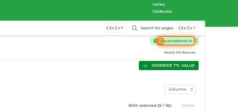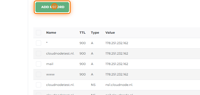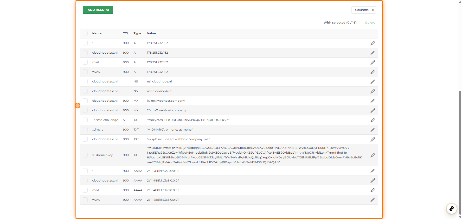 Hier kan je al je DNS regels vinden van je domeinnaam
