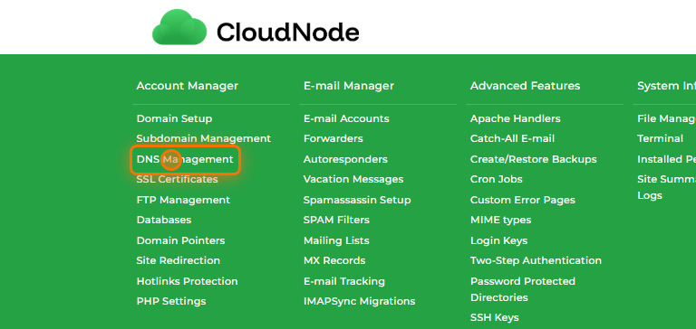 Ga naar de DirectAdmin webomgeving en klik op DNS Management