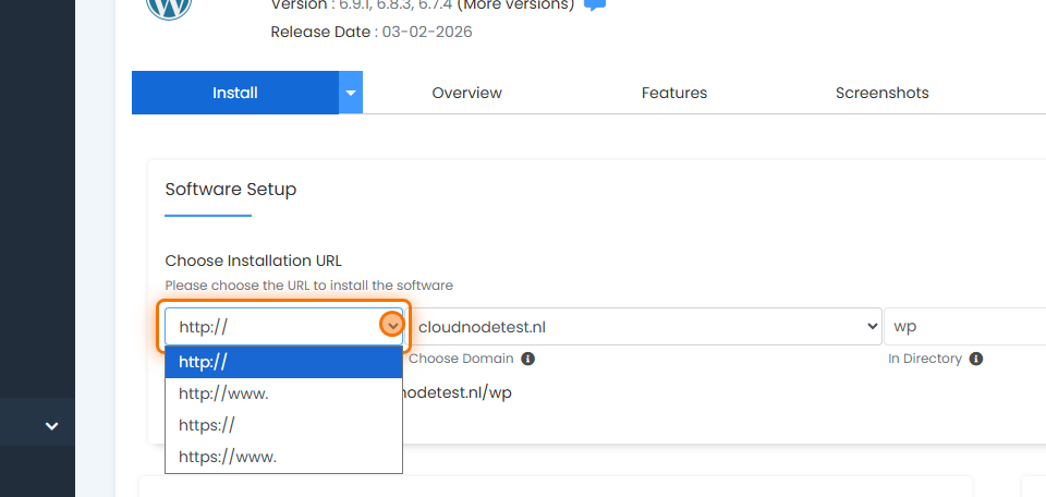 Klik bij WordPress op Install