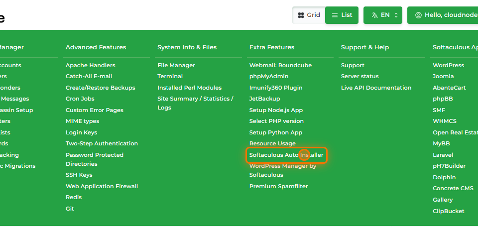 Log in op DirectAdmin en klik op Softaculous Auto Installer