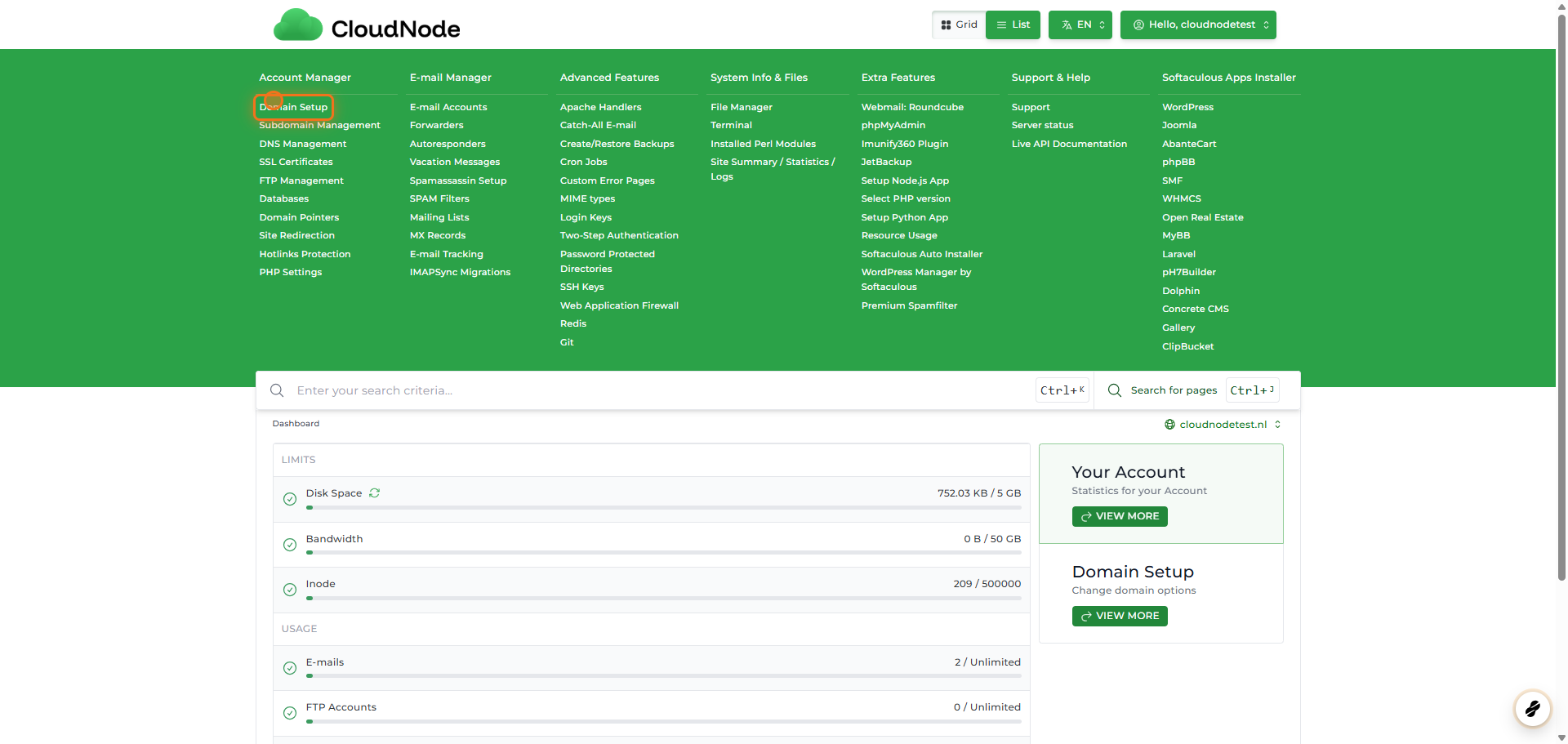 Ga naar het DirectAdmin dashboard